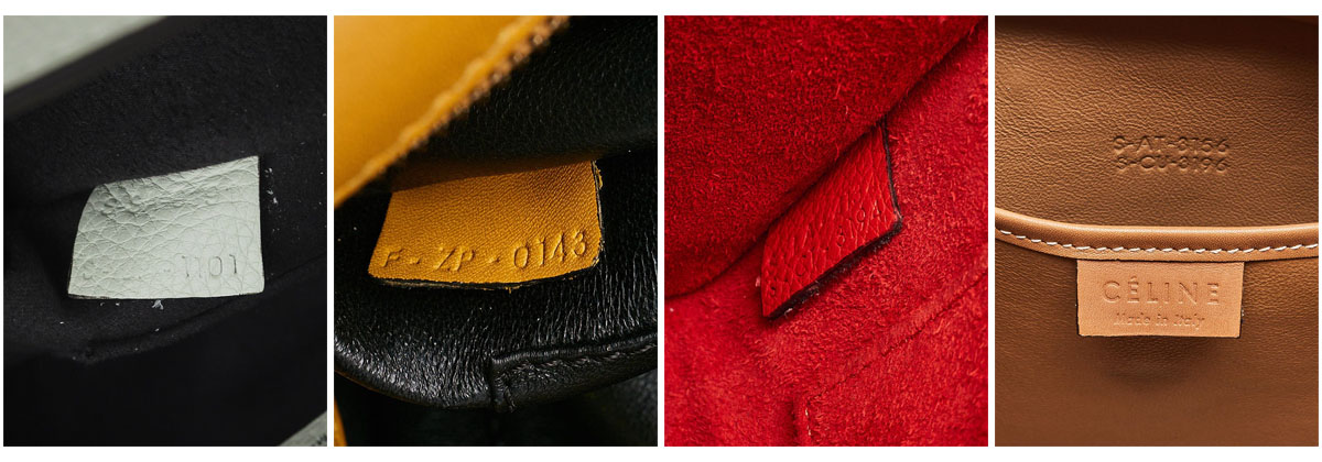 Do Celine bags have serial numbers? No. Instead, Celine bags have date codes. In most Celine bags, you’ll find a set of letters and numbers embossed inside the item, which indicate where and when a bag was created. The embossed numbers are not unique and can be repeated. This means that multiple bags can have the exact same date code, NOT a serial number. The format of a Celine date code will always be the same: one letter, followed by two letters, followed by four numbers, separated by a dash.
